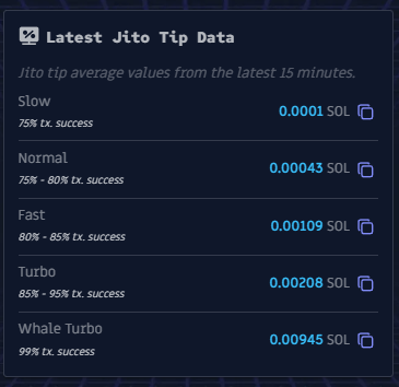 De plus, le montant de votre Jito Tip influence également la vitesse de confirmation. Un Jito Tip plus élevé = une transaction confirmée plus rapidement.