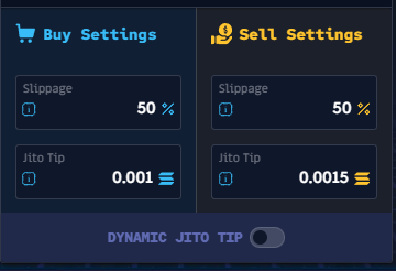 Il existe 5 niveaux de Jito Tip : Lent, Normal, Rapide, Turbo et Whale Turbo.
