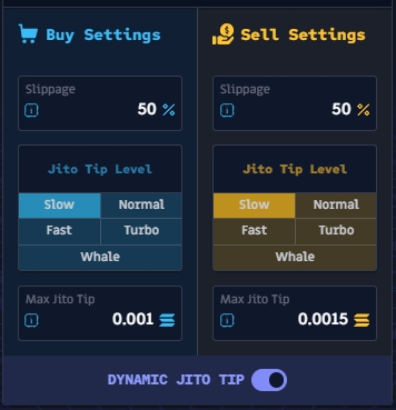 Définir un Jito Tip maximum pour vos paramètres d’achat et de vente.