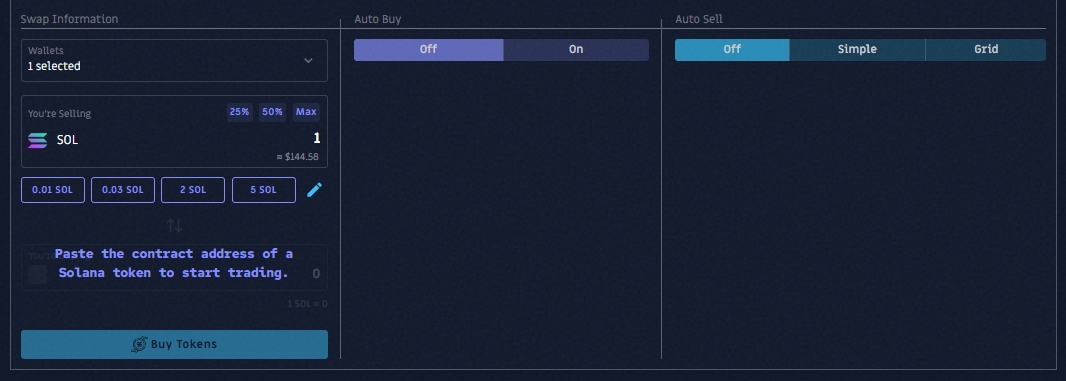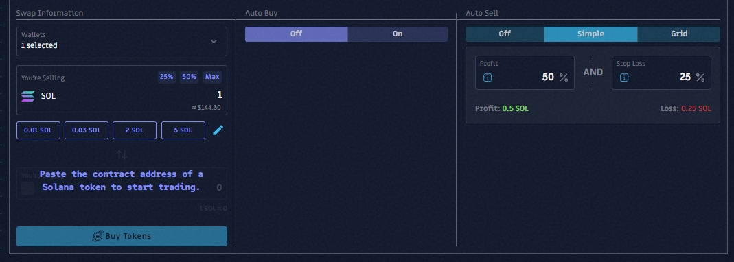 Cette stratégie vous permet d’acheter des tokens et de laisser Sniperoo les vendre automatiquement à votre place.