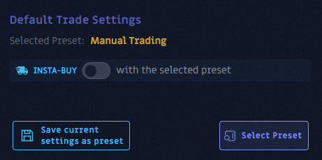 Un préréglage de trading est une combinaison de vos paramètres d’achat automatique et de vente automatique. Une fois vos paramètres définis, vous pouvez cliquer sur "Enregistrer les paramètres actuels comme préréglage", afin de les réutiliser facilement.