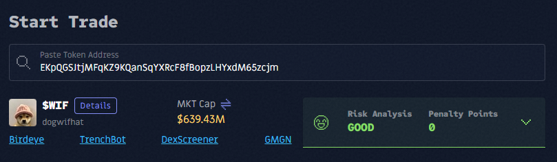 Liens rapides vers : Birdeye, TrenchBot, Descreener et GMGN