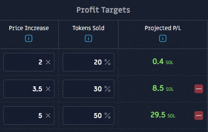 Vous pouvez ajouter ou supprimer des objectifs de profit dans les deux stratégies de vente en grille.