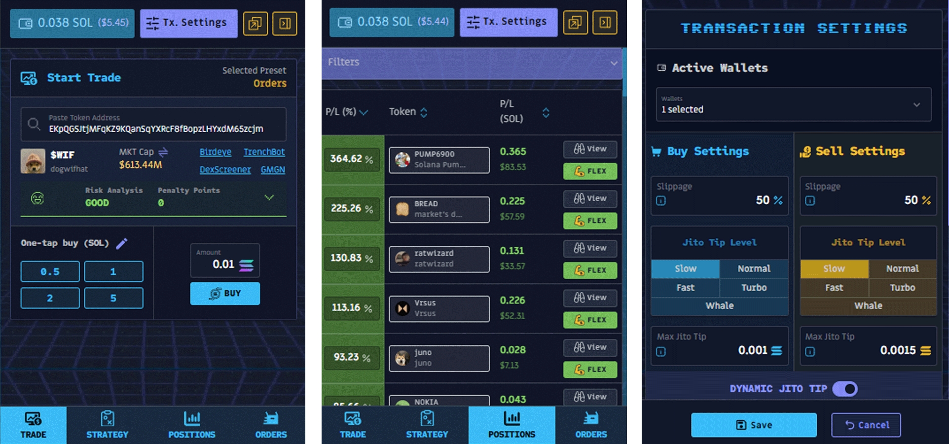 De plus, l’extension s’intègre parfaitement à vos plateformes de trading préférées, telles que Dexscreener, BullX, GMGN et Photon. Consultez les métriques des tokens, effectuez des transactions et surveillez vos positions sans jamais quitter la page que vous consultez.