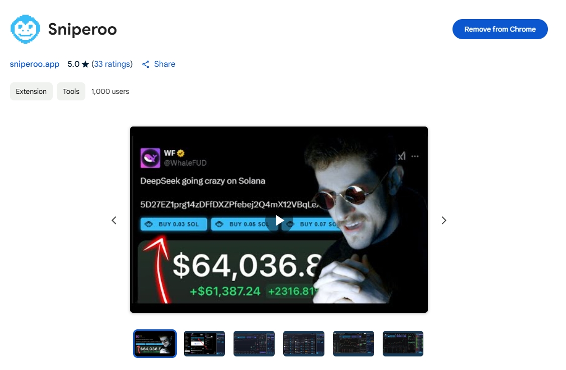 L’extension Sniperoo est actuellement disponible officiellement uniquement sur Google Chrome.