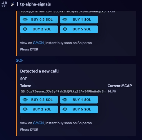 De la même manière que sur Twitter, vous pourrez également sniper des tokens partagés sur Discord dans n'importe quel canal ou communauté à laquelle vous appartenez.