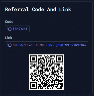 Votre lien de parrainage sert d'outil puissant pour construire un revenu passif. Chaque parrainage réussi ajoute à vos gains tout en contribuant à développer la communauté Sniperoo.